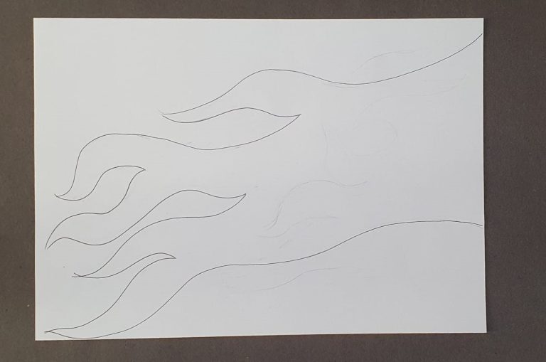3a. Get another sheet of A4 white paper, draw the flames horizontally as in the picture below. This will be the middle part for the body of the horse.