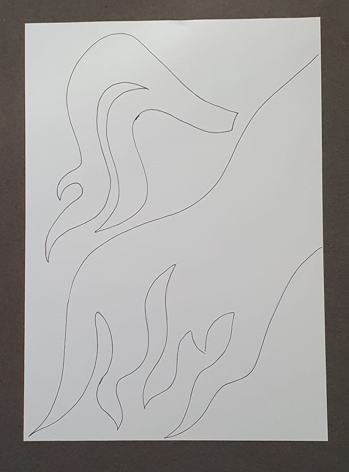 3b. On another sheet of white A4 paper draw another flame shape for the body and draw a horse tail like a flame.