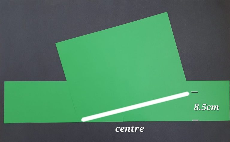 4a. Lay your green headband flat. Place another sheet of green A4 paper horizontally in the centre.