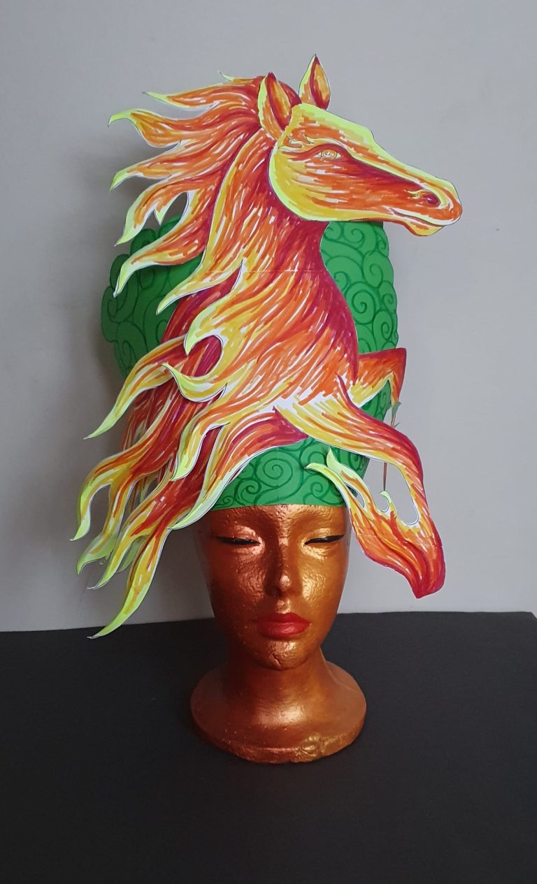 You could add a sparkly element to the Chinese fire horse headdress to make it more creative and visually striking.